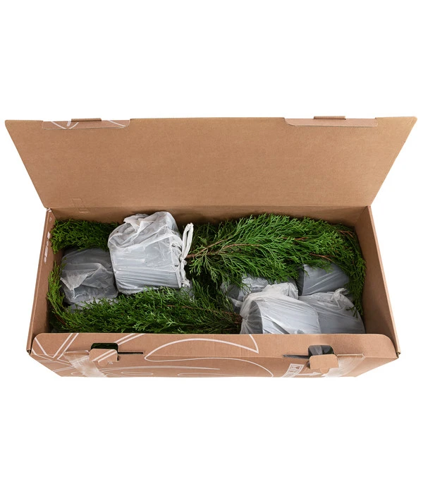 Ein dichtes, grünes Nadelkleid verbunden mit einem unkomplizierten, anpassungsfähigen Naturell – kein Wunder, dass die Thuja ‘Smaragd‘ ganz schnell das Siegertreppchen als beliebteste immergrüne Gartenpflanze in Deutschland bestiegen hat. Kaum eine Gartenanlage, in der sich nicht einer oder mehrere Abendländische Lebensbäume zur Schau stellen und einen lebendigen Blickfang bilden. Dank des aufrechten, schlanken Wuchses eignet sich die Konifere ebenfalls ausgezeichnet als edle Heckenpflanze, die auch kleinere Gärten mit einem immergrünen Sicht- und Lärmschutz bereichert. Und dabei keine besonderen Ansprüche an den Gärtner stellt. Umgeben auch Sie Ihren Garten mit einer wunderschön dichten, frischgrünen Hecke, deren verzweigter Wuchs zugleich vielen Vögeln als Nist- und Brutplatz dient. Mit anderen Worten: Pflanzen Sie baldmöglichst viele Meter Thuja ‘Smaragd‘ in Ihr grünes Paradies.
