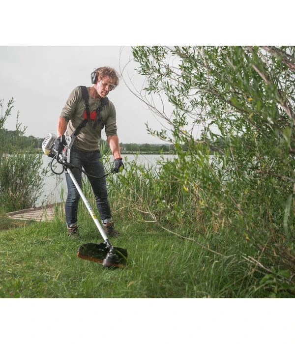 Die mit einem 3-Zahn-Messerblatt und einem Fadenkopf versehene AL-KO Motorsense BC 500B mit 2-Takt-Motor ist durchzugsstark und erlaubt Ihnen ein Arbeiten unabhängig von einer Stromversorgung. Sie verfügt über eine solide elektrische Zündung, über eine doppelt gelagerte Kurbelwelle sowie über ein robustes Winkelgetriebe. Gestartet wird dieses Gerät ganz unkompliziert mittels Seilzug. Bestellen Sie die Motorsense BC 500B von AL-KO am besten noch heute, um Ihre Gartenwelt noch schöner zu machen!