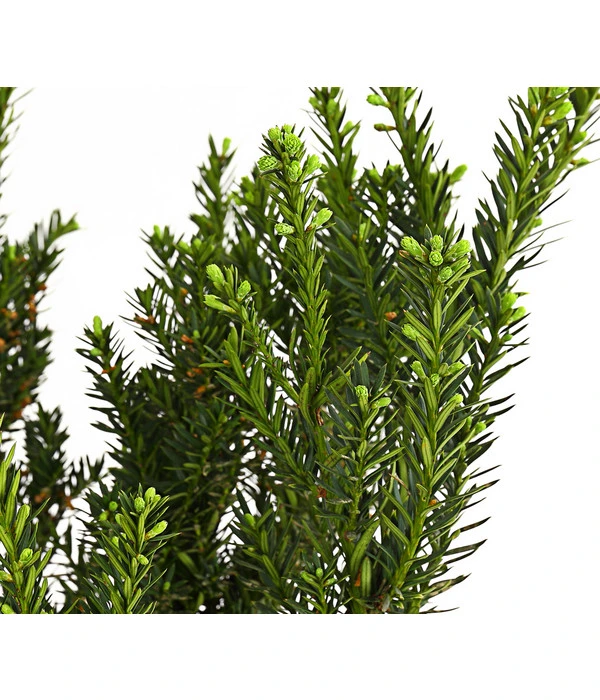Für viele Gärtner gibt es kaum eine wertvollere Gartenpflanze als eine Eibe. Sie werden seit Jahrtausenden als gestalterisches Element in die Gartengestaltung einbezogen, denn mit ihrem prächtigen Wuchs und den dunkelgrünen Nadeln lassen sich an verschiedenen Stellen interessante Akzente setzen. Auch in modernen Hausgärten. Die Sorte ‚Hillii‘ ist die männliche Variante zu der weiblichen Sorte ‚Hicksii‘ und sorgt dafür, dass auf der weiblichen Eibe unzählige kugelige, rote Beeren leuchten. Die Eibe ‚Hillii‘ eignet sich perfekt als blickdichte Heckenpflanze, sie kann aber auch als ausdrucksstarker Solitär die Blicke auf sich lenken. Die Becher-Eibe ‚Hillii‘ ist extrem frost- und winterhart und zeichnet sich durch eine außergewöhnlich hohe Schnittverträglichkeit aus.