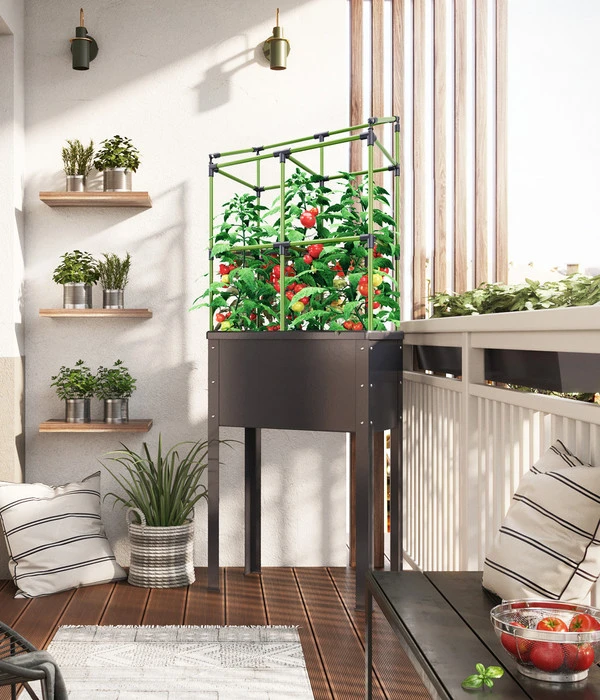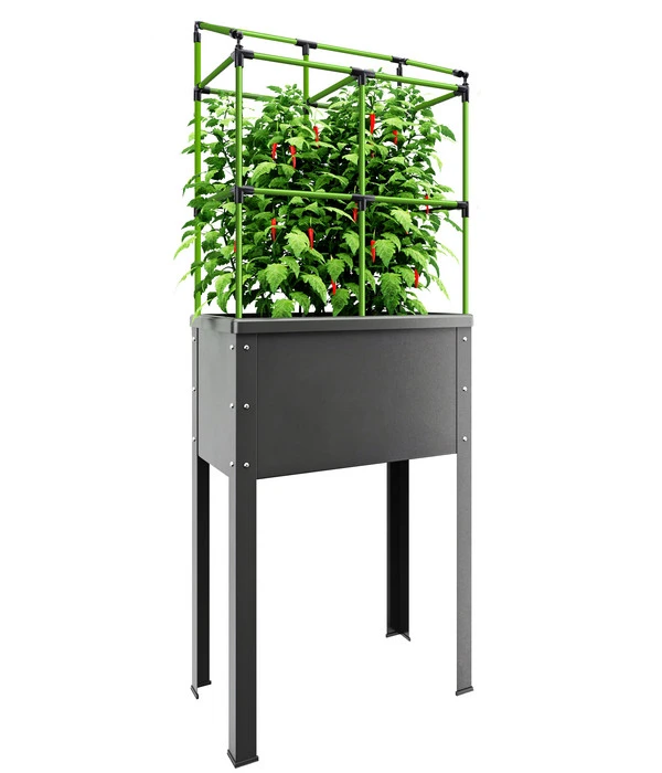 Sie lieben es, frische Kräuter und schmackhaftes Gemüse anzubauen, und wollen sich das ab jetzt leichter machen? Dann setzen Sie auf das Metallhochbeet City Jungle Heidelberg von Bio Green! Sie können es flexibel im Garten, auf dem Balkon, der Terrasse oder im Wintergarten einsetzen und werden sich an jedem Standort über eine ertragreiche Ernte freuen. Die angenehme Arbeitshöhe ist ein weiterer Vorteil dieses cleveren Hochbeets, auf die Sie sicher sehr schnell nicht mehr verzichten wollen. Ganz gleich, ob essbare Blüten, Basilikum, Tomaten oder Heidelbeeren, das City Jungle Beet bietet Ihnen für jedes Gewächs viel Platz und ein praktisches Rankgitter. Dadurch garantieren Sie auch Kletterpflanzen ein ideales Wachstum, ohne mit Schnüren, Stäben oder anderen Hilfsmitteln arbeiten zu müssen.