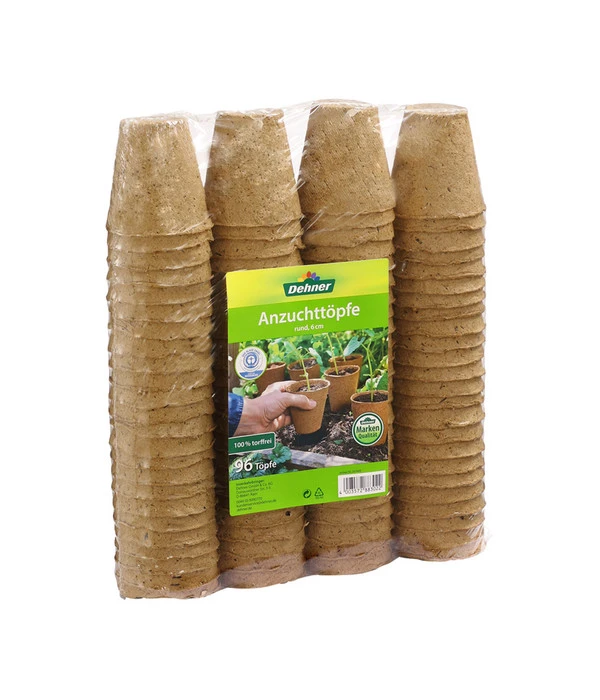 Die Aufzucht von Jungpflanzen ist für Hobbygärtner ein besonderes Erlebnis. Die heranwachsenden Pflänzchen lassen jedes Gärtnerherz höher schlagen. Vor allem die sortenechte Vermehrung von Pflanzen, ist durch eine eigene Zucht gut umsetzbar. Gerade die ersten Wochen sind besonders spannend. Wenn die kleinen Sprösslinge die ersten Triebe durch die Erdoberfläche stoßen, dann kann man die jungen Pflanzen täglich beim Wachsen beobachten. Die runden Dehner Anzuchttöpfen eignen sich ideal zur Vermehrung durch Pikieren kleiner Sämlinge, zur Aussaat von Samenkörnern und für die Anzucht von Stecklingen. Der Durchmesser am Boden beträgt ca. Ø 3,7 cm (Innendurchmesser am Boden ca. Ø 3,5 cm). Die umweltfreundlichen zu 100 % torffreien Anzuchttöpfchen bestehen aus PEFC-zertifizierter Zellulose und sind im praktischen Mehrfachpack erhältlich. In einer Packung erhalten Sie 96 Anzuchttöpfchen der Dehner Markenqualität.