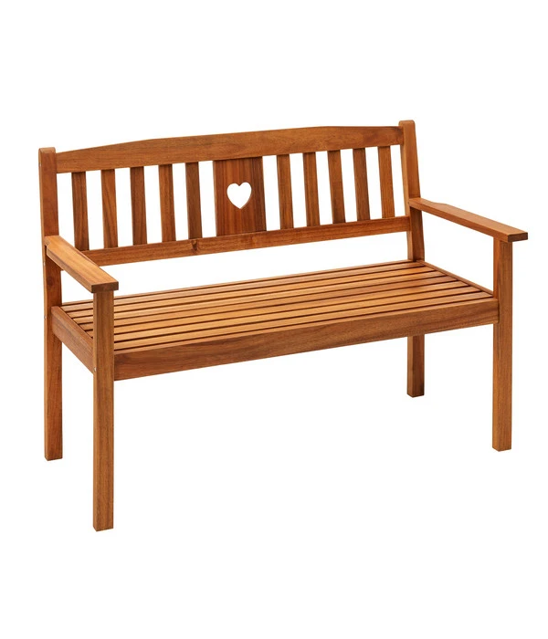 Bei Sonnenschein eine Tasse Kaffee zu genießen, dem Gesang der Vögel zu lauschen oder ein gutes Buch zu lesen, ist mit einer komfortablen Sitzgelegenheit gleich nochmal so schön. Die aparte, einladende Bank Heart punktet mit einer angenehmen Sitzhöhe und bietet genug Platz, sodass Sie die Freude teilen können. Schaffen Sie sich mit der bequemen Konstruktion aus Holz einen idyllischen Rückzugsort. Um Ihre Pausen noch gemütlicher zu machen, empfiehlt es sich, schnell ein passendes Polster mitzubestellen. Kuschelige Auszeiten warten auf Sie – sichern Sie sich Ihre persönliche Dehner Bank Heart und lassen Sie es sich gut gehen!