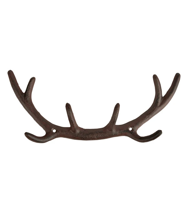Der rustikale Landhausstil gefällt Ihnen sehr und das wollen Sie auch bei Ihren dekorativen Elementen zeigen? Mit dem Gusseisen-Wandhaken Geweih wird das nicht schwer. Sein eindrucksvolles Aussehen begeistert jeden Betrachter. Sofort weiß man, dass hier jemand jedes Detail seiner Inneneinrichtung sorgfältig ausgewählt hat. Selbstverständlich können Sie das Geweih auch draußen anbringen und für Aufsehen sorgen. Nicht zu vergessen ist sein praktischer Nutzen. Als Garderobe und Haken für Regenschirm, Fernglas oder Hut steht Ihnen und Ihren Gästen diese Vorrichtung jederzeit zur Verfügung.