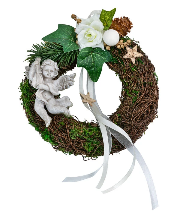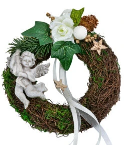 Ein Engel aus robustem Polyresin ziert das Arrangement und symbolisiert Schutz und Hoffnung in dieser schweren Zeit. Mit seinem liebevoll gestalteten Ausdruck fügt er dem Grabkranz eine besondere Bedeutung hinzu und erinnert uns an die Anwesenheit und den Segen der Engel. Der Kranz ist mehr als nur ein Grabschmuck, er ist ein Symbol der Erinnerung, der Stille und der Anmut. Er schafft einen Ort des Gedenkens, an dem Sie Ihrem geliebten Menschen nahe sein können. Lassen Sie Ihre Erinnerungen erblühen, bestellen Sie den Grabkranz Salim von Dehner noch heute und finden Sie Trost und Frieden in seiner schlichten Schönheit.