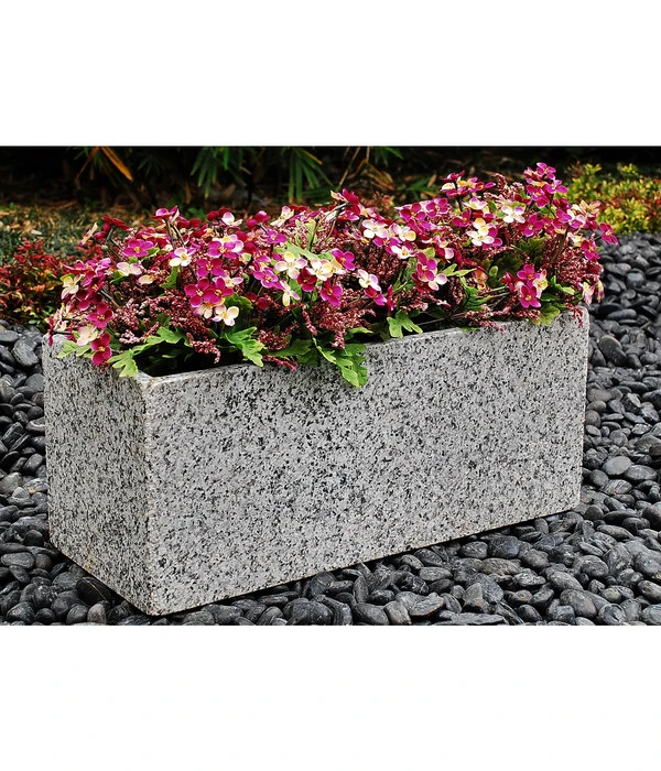 Suchen Sie noch nach dem passenden Behältnis für Ihre Blumen und Pflanzen? Robust und beständig zugleich, aber schön und dekorativ sollte es sein? Dann ist der Granit-Pflanztrog, grau, genau das richtige Produkt für Sie. Der Blumenkübel aus Granit bietet Ihren Pflanzen einen soliden Halt und lässt sich durch sein modernes, zeitloses Design in jede Umgebung integrieren. Optimal kommt der Kübel auf Ihrer Terrasse, dem Balkon oder im Eingangsbereich Ihres Hauses zur Geltung. Aber ganz gleich, für welchen Ort Sie sich entscheiden – dieser erhält durch den Granit-Pflanztrog, grau, eine enorme optische Aufwertung.