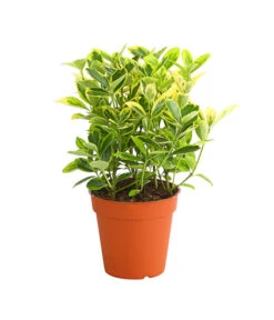 Als erstes lenkt der Japanische Spindelstrauch ‚Marieke‘ die Aufmerksamkeit seiner Betrachter mit seinem interessant zweifarbigen Blattschmuck auf sich, denn die dunkelgrünen Blätter dieser Zierpflanze sind mit einem leuchtend gelben Rand eingefasst. Als nächstes wird man mit Freude den aufrechten, buschigen Wuchs der Pflanze registrieren und dann sind es nur noch wenige Schritte, bis dieses dekorative Ziergehölz auch Ihren Garten schmücken wird. Es hat nämlich noch einen Vorzug, den viele Gartenbesitzer sehr schätzen: Der Strauch wirft seine schönen Blätter im Herbst nicht ab wie andere Laubgehölze, sondern er präsentiert sich auch im Winter in voller Schönheit. Mit seiner maximalen Wuchshöhe von 2 m, die der Strauch aber dank seiner mäßigen Wüchsigkeit – wenn überhaupt – erst in vielen Jahren erreichen wird, ist der Japanische Spindelstrauch die ideale Pflanze auch für kleine Gärten.