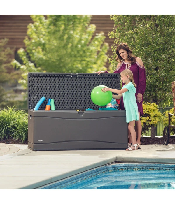Sie würden gern mit einer komfortablen Lösung für mehr Ordnung in Ihrem Outdoorbereich sorgen? Dann haben Sie diese mit der Kissenbox von Lifetime jetzt gefunden! Das hochwertige Aufbewahrungstalent ist ein echter Allrounder, was den Stauraum angeht. Egal, ob die Kissen der Loungemöbel, das Spielzeug Ihrer Kinder, Gartenwerkzeug oder Poolutensilien, in der Box ist alles schnell und ordentlich aufbewahrt. Die doppelwandige, robuste Konstruktion bietet Ihnen dabei viel Sicherheit und Stabilität, sodass Sie sich jederzeit über Ihre neue Anschaffung freuen werden. Auch für eine Party bringt dieser Begleiter mehr Komfort. Sollten zusätzliche Gäste vorbeikommen, sind die Sitzkissen ohne Suchen oder ohne ins Haus zu gehen sofort griffbereit. Laden Sie sich doch gleich ein paar mehr Freunde ein, denn Sie sind ab jetzt gut vorbereitet!