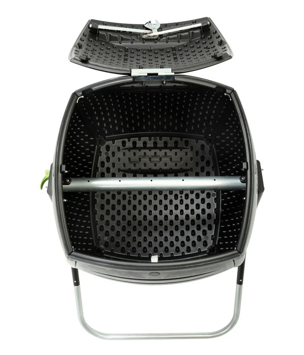 Der Lifetime Trommelkomposter ist die perfekte Lösung für all diejenigen, die im Handumdrehen Küchen- und Gartenabfälle in hochwertigen Kompost umwandeln möchten. Mit dem durchdachten Dreh-System und qualitativen Materialien wird die Kompostierung schnell zum Kinderspiel. Durch das gelegentliche Drehen des in mehrere Positionen verstellbaren Kunststoffgehäuses gewährleistet die Kompostiermaschine eine schnelle Kompostierung. Das Drehen der Trommel lockert ebenso das Kompostgut auf und durchmischt dies, während eine Zufuhr für eine ideale Befeuchtung und ausreichend Luft sorgt.