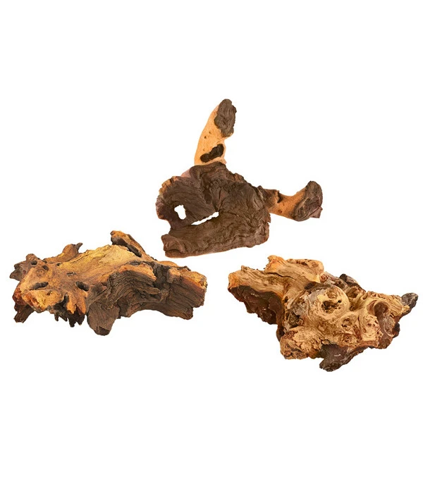 Das Holz bietet aber nicht nur schönen Tillandsien ein attraktives Zuhause. Die Wurzeln sind nicht giftig und völlig unschädlich für die Aquarien- und Terrarien-Bewohner. So gestalten sich die Wurzelstück in der Unterwasserwelt als idealer Versteck- und Ablaichplatz für Fische und andere Tiere. Dank des hohen Eigengewichts, sinken die Wurzeln schnell auf den Grund der Aquariums, dennoch sollten Sie die Stücke vor der Verwendung abkochen, um eine Verfärbung des Wassers zu vermeiden. Auch Im Terrarium werden kleine Reptilien ihren Spaß an den Mopani-Wurzeln haben, da sie es als spannendes Klettergerüst und sicheres Versteck nutzen. Auch im Pflanzen-Terrarium mit exotischen Grünpflanzen oder Fleischfressenden Pflanzen machen sich die Mopani-Wurzeln gut als Dekorations-Element und bringen uns im Klein-Format kleine natürliche Landschaft in die eigenen vier Wände.
