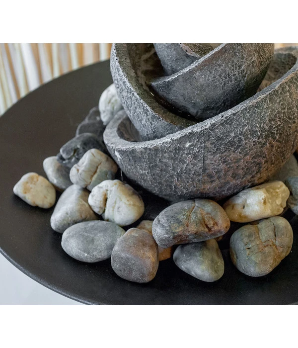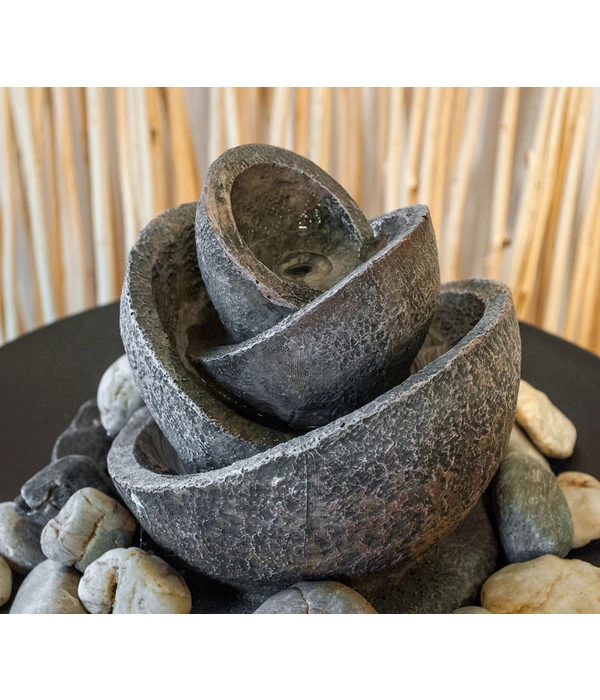 Sie sehnen sich nach innerer Ruhe? Nach einem Zufluchtsort, an welchem Sie neue Energie tanken und Kraft schöpfen können? Dann lassen Sie sich von unserem bildschönen Pajoma Zimmerbrunnen Flower mit seiner einzigartig und liebevoll gestalteten Blüte aus Kunstharz verzaubern. Leise und entspannend rieselt das Wasser über die kunstvollen Blütenblätter hinab auf die Naturkiesel, welche auf einer schwarzen Schale verteilt sind. Dieses traumhaft schöne Dekorationselement besteht aus bruchfestem Polyresin und ist eine Bereicherung für all Ihre Räume. Dank seines extra langen Stromkabels und seines geringen Gewichts lässt es sich überall platzieren – Ihrer Kreativität sind keine Grenzen gesetzt.