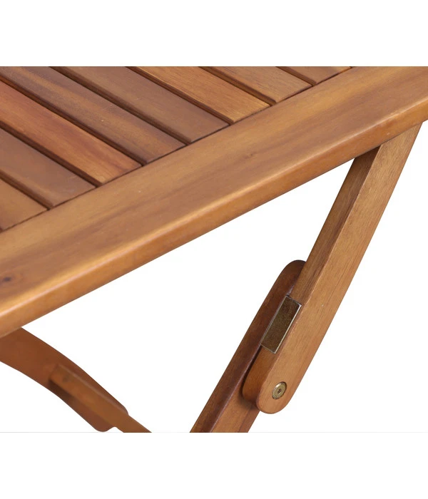 Um die Haltbarkeit und Witterungsbeständigkeit des Tisches zu erhöhen, wurde das Holz leicht geölt. Darüber hinaus sorgen die aus galvanisiertem Stahl gefertigten Verschraubungen und Beschläge für eine hervorragende Stabilität des Gartenmöbels. Damit Sie nach dem Essen den Platz anderweitig verwenden können, lässt sich die Tischplatte einfach zusammenklappen. Danach kann das Objekt platzsparend verstaut werden. Wenn Sie es lieben, im Sommer die Mahlzeiten draußen einzunehmen, dann lassen Sie sich den Klapptisch Akazie von Siena Garden bequem nach Hause liefern!