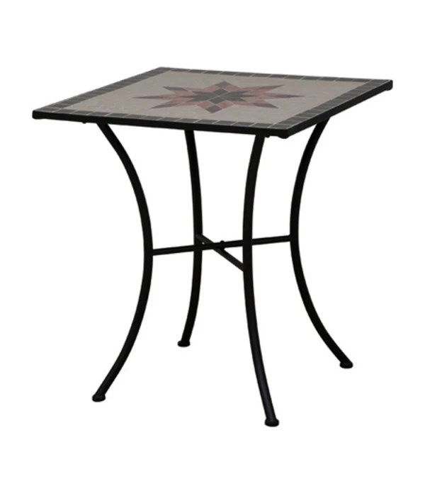Der Siena Garden Tisch Stella ist für viele verschiedene Gelegenheiten geeignet. Ob als Abstelltisch für Beilagen, als Esstisch für die kleine Runde oder für die entspannte Tasse Kaffee unter freiem Himmel – der Outdoortisch macht immer eine gute Figur. Neben der hohen Material- und Verarbeitungsqualität überzeugt der Siena Garden Tisch Stella auch durch eine sehr leichte Pflege. In den meisten Fällen genügt es, wenn Sie ihn mit einem feuchten Tuch abwischen. Außerdem begeistert der Gartentisch durch ein stilvolles Äußeres. Auffällig ist die markante Formgebung des Gestells und der Kontrast durch die quadratische Tischplatte. Die Oberfläche des Siena Garden Tisches Stella ist mit einem filigranen Stern-Mosaik verziert, wodurch er zu einem echten Blickfang in Ihrem Garten wird. Die mediterrane Optik lässt sich sehr vielseitig kombinieren und passt bestimmt auch in Ihren Außenbereich.