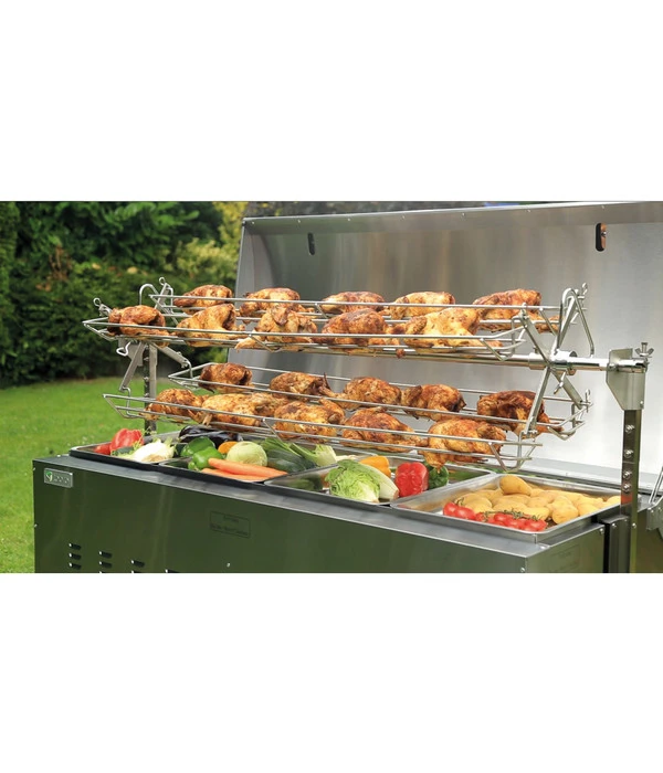 Mit im Programm führt der Columbus einen Hähnchenkorb für bis zu 30 köstliche Hühnchen. Dieses Zubehör ermöglicht Ihnen dank der waagrechten Spießführung bei geschlossenem Deckel ein besonders gleichmäßiges Garen. Zudem ist der Grill perfekt mit Positionsverstellung und Auffangschale ausgestattet, um Ihnen das Tranchieren und anschließende Reinigen leicht zu machen.