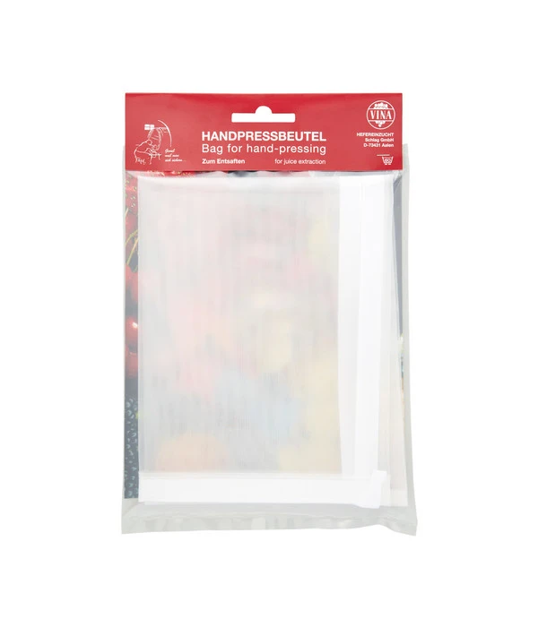 Weiche Früchte wie z.B. Beeren, Pfirsiche, Trauben oder Pflaumen lassen sich besonders leicht entsaften und eignen sich ideal für die heimische Saft- und Weingewinnung. Der Handpressbeutel mit Fassungsinhalt von 3 kg ist somit das ideale Wein-Zubehör. Mit Fruchtbrei oder angegorenen Fruchtmaischen befüllt, erhalten Sie durch Auswringen den reinen Saft, den Sie zur Weinherstellung – je nach Rezept – weiterverwenden können.