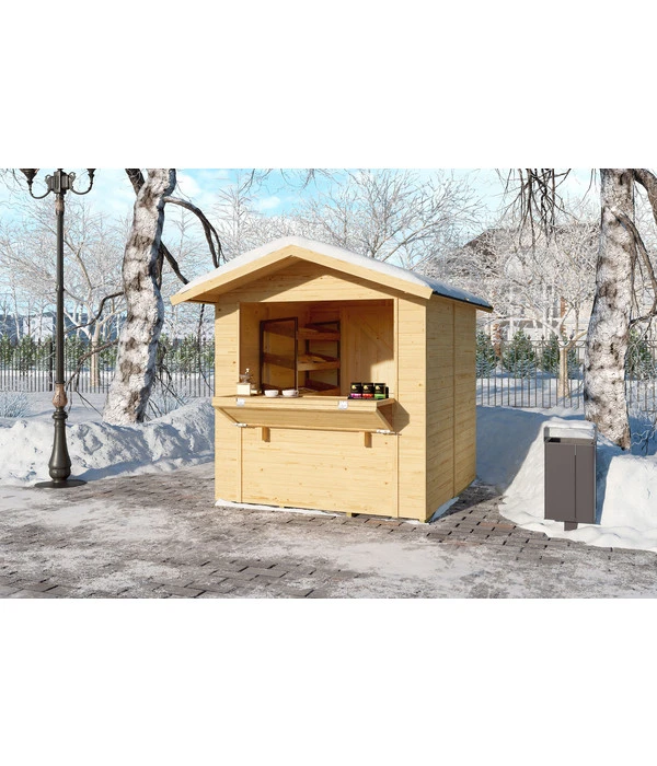 Sie suchen nach einer Möglichkeit, Ihre liebevoll hergestellte Ware im Außenraum ansprechend in Szene zu setzen und kundenfreundlich zu verkaufen? Das hochwertige, aus Fichtenholz gefertigte Weka Verkaufshaus 596 bietet Ihnen dazu die Möglichkeit. Es eignet sich zum Beispiel als Stand auf Volksfesten, auf Weihnachtsmärkten oder bei privat organisierten Events und Feiern. Neben seinem rustikalen Charme besticht das ansprechende Weka Verkaufshaus 596 durch sein großzügiges Verkaufsfenster, dessen zweigeteilte Klappe im geöffneten Zustand als stabile, belastbare Verkaufsfläche fungiert. Ihre angebotene Ware – wie etwa kleine Köstlichkeiten oder handgearbeitete Artikel – können Sie dekorativ auf der Stellfläche in Szene setzen.
